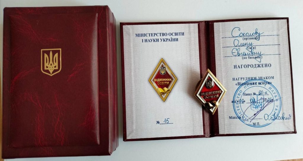 Нагрудний знак «Відмінник освіти» є однією з почесних відзнак Міністерства освіти і науки України та присуджується за вагомий особистий внесок у розвиток освітньої галузі, високий професіоналізм, багаторічну сумлінну педагогічну діяльність і значні досягнення у підготовці висококваліфікованих фахівців.